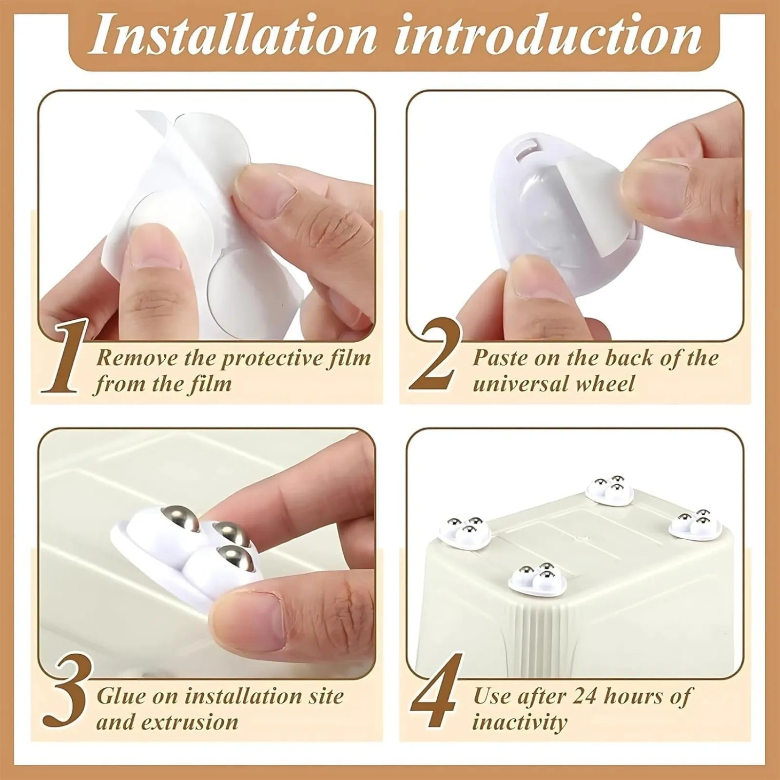 - Yes, absolutely! Each set of Mini Swivel Wheels comes with high-quality self-adhesive tape, ensuring a hassle-free installation process. Just peel and stick – it's that simple!