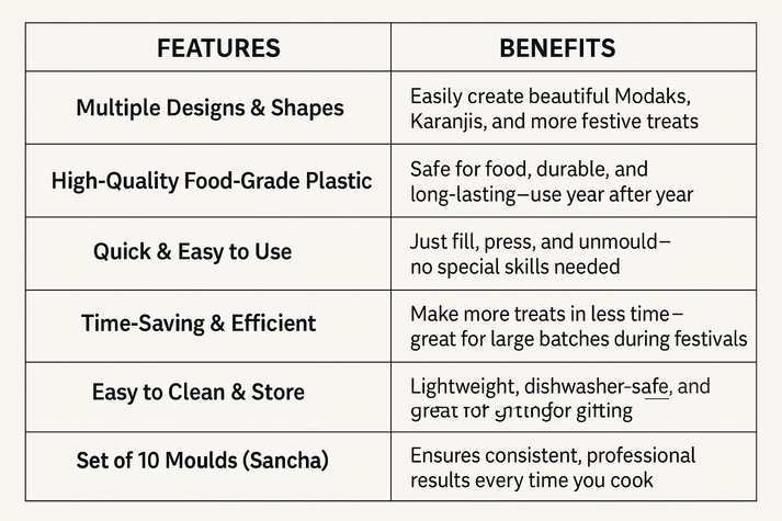 Make multiple Modak's or dumplings in minutes — perfect for family gatherings and festive cooking marathons.Â